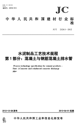 JCT2126.1-2012 水泥制品工艺技术规程 第1部分:混凝土与钢筋混凝土排水管.docx
