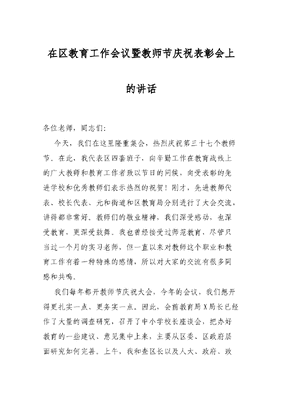 在区教育工作会议暨教师节庆祝表彰会上的讲话.docx