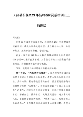 X副县长在2021年新聘教师岗前培训班上的讲话.docx