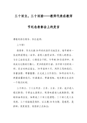 三十而立,三十而励——教师代表在教师节纪念表彰会上的发言.docx