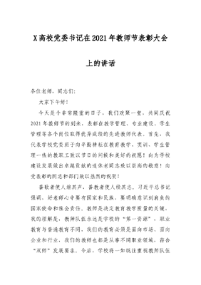 X高校党委书记在2021年教师节表彰大会上的讲话.docx