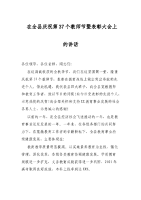 在全县庆祝第37个教师节暨表彰大会上的讲话.docx
