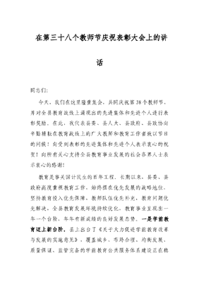 在第三十八个教师节庆祝表彰大会上的讲话.docx