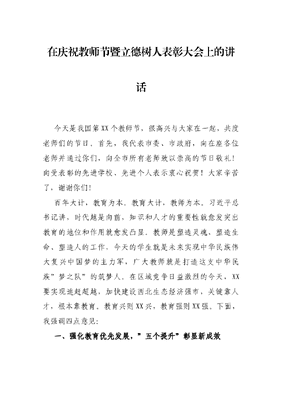在庆祝教师节暨立德树人表彰大会上的讲话.docx