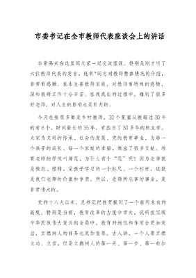 市委书记在全市教师代表座谈会上的讲话.docx