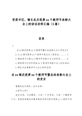(5篇)党委书记、镇长在庆祝第xx个教师节表彰大会上的讲话材料汇编.docx