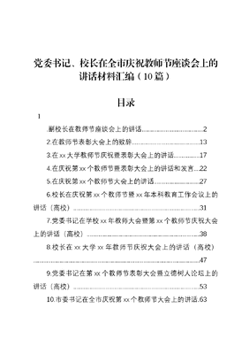 (10篇)党委书记、校长在全市庆祝教师节座谈会上的讲话材料汇编.docx