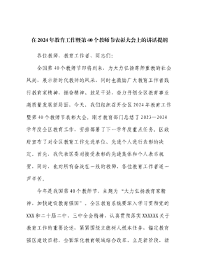 在2024年教育工作暨第40个教师节表彰大会上的讲话提纲.docx