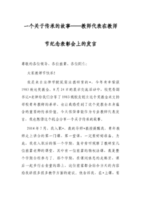 一个关于传承的故事——教师代表在教师节纪念表彰会上的发言.docx