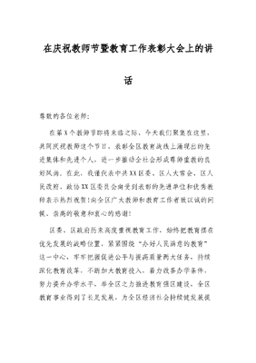 在庆祝教师节暨教育工作表彰大会上的讲话.docx