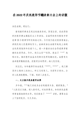 在2022年庆祝教师节暨表彰大会上的讲话.docx