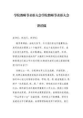 学院教师节表彰大会学院教师节表彰大会讲话稿.docx