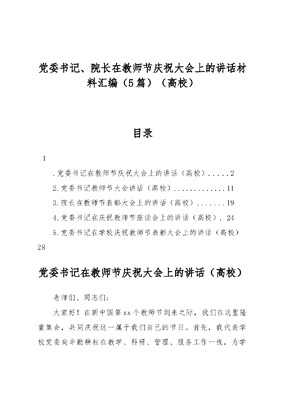 (5篇)党委书记、院长在教师节庆祝大会上的讲话材料汇编(高校).docx