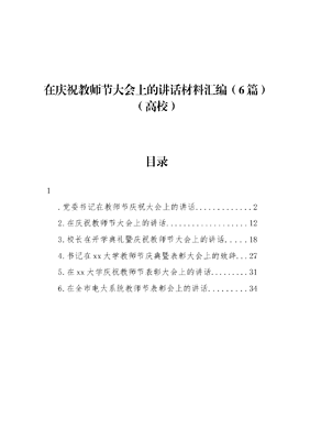 (6篇)在庆祝教师节大会上的讲话材料汇编(高校).docx