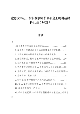(14篇)党总支书记、校长在教师节表彰会上的讲话材料汇编.docx