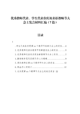 (7篇)优秀教师代表、学生代表在庆祝表彰教师节大会上发言材料汇编.docx