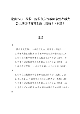 (9篇)党委书记、校长、院长在庆祝教师节暨表彰大会上的讲话材料汇编(高校).docx