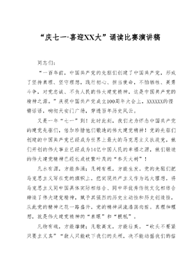 “庆七一·喜迎二十大”诵读比赛演讲稿.doc