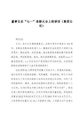 董事长在“七一”表彰大会上的讲话(集团公司).docx