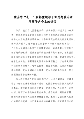 在全市“七一”表彰暨领导干部思想政治素质辅导大会上的讲话.docx