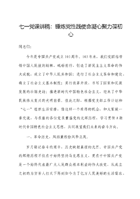 七一党课:锤炼党性践使命凝心聚力葆初心.docx