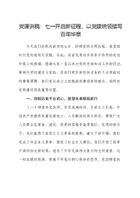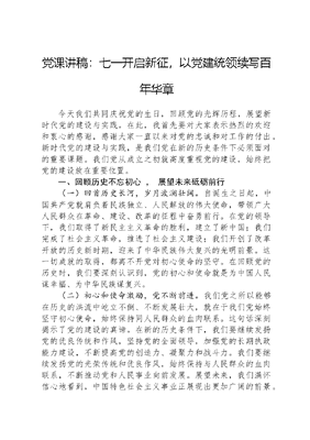 党课讲稿:七一开启新征,以党建统领续写百年华章 .docx