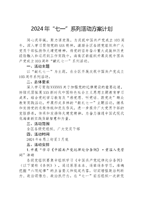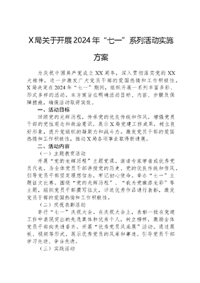 X局关于开展2024年“七一”系列活动实施方案.docx