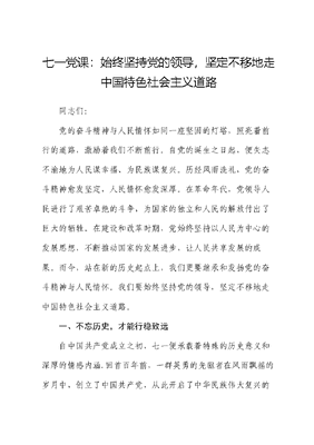 七一党课:始终坚持党的领导,坚定不移地走中国特色社会主义道路.docx