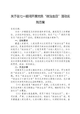 关于在七一期间开展党员“政治生日”活动实施方案.docx