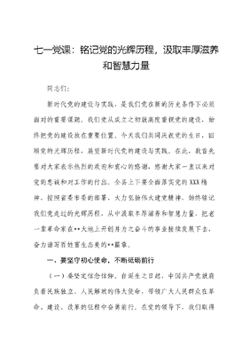 七一党课:铭记党的光辉历程,汲取丰厚滋养和智慧力量.docx