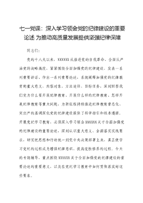 七一党课:深入学习领会党的纪律建设的重要论述 为推动高质量发展提供坚强纪律保障.docx