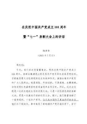 七一表彰大会讲话.docx