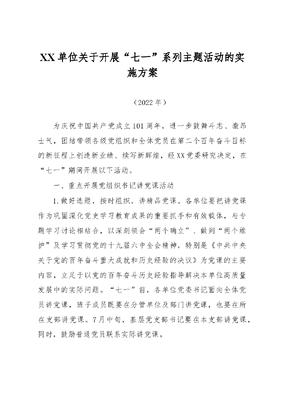 XX单位关于开展“七一”系列主题活动的实施方案(2022年).docx