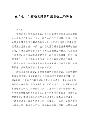 在七一基层党建调研座谈会上的讲话.doc
