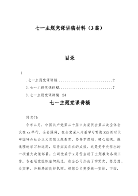 (3篇)七一主题党课讲稿材料.docx