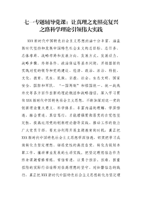 七一专题辅导党课:让真理之光照亮复兴之路科学理论引领伟大实践.docx