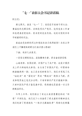 七一表彰大会书记讲话稿..docx