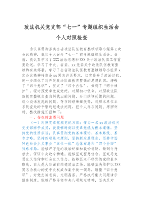 政法机关党支部“七一”专题组织生活会个人对照检查.docx