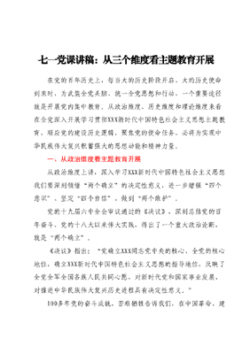 七一党课讲稿:从三个维度看主题教育开展.docx