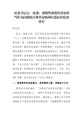 纪委书记七一党课:锤炼坚强党性 彰显担当作为 以彻底自我革命精神打造纪检监察铁军.docx