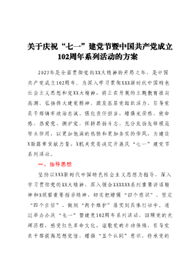关于庆祝“七一”建党节暨中国共产党成立102周年系列活动的方案.docx