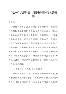 七一党课:党的奋斗精神与人民情怀.docx