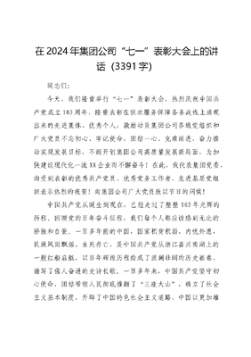 在2024年国企“七一”表彰大会上的讲话.docx