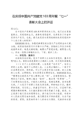 在庆祝中国共产党建党103周年暨“七一”表彰大会上的讲话.docx