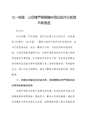 七一党课:以纪律严明保障中国式现代化实践不断推进.docx