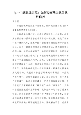 七一主题党课讲稿:如何提高基层党员党性修养.docx