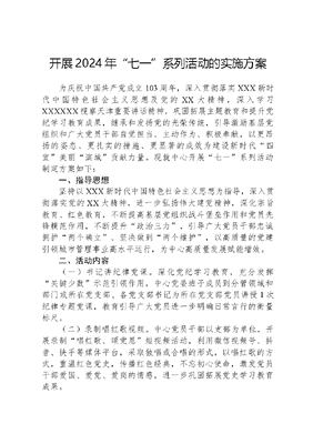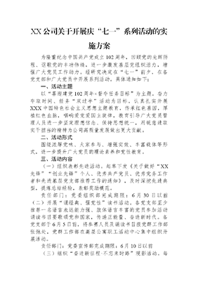 XX公司关于开展庆“七一”系列活动的实施方案.docx