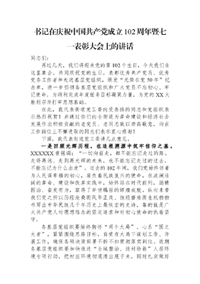 书记在庆祝中国共产党成立102周年暨七一表彰大会上的讲话.docx