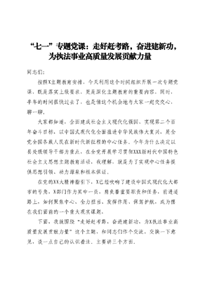“七一”专题党课:走好赶考路,奋进建新功,为执法事业高质量发展贡献力量.docx