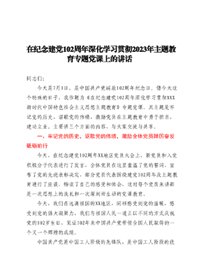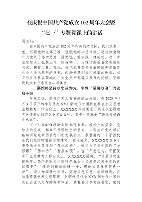 在庆祝中国共产党成立102周年大会暨“七一”专题党课上的讲话.docx